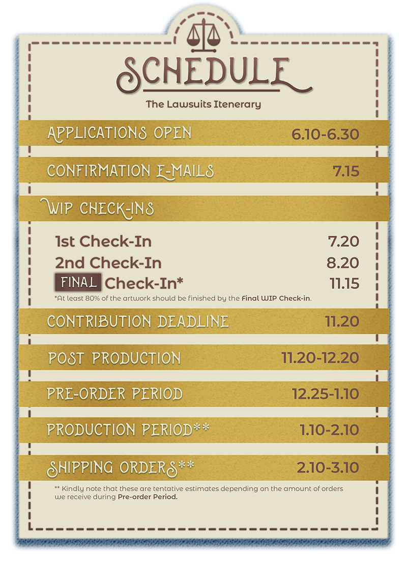 There will be 3 check-in dates. It is mandatory to check-in for only 1, though, it is encouraged for all 3. 80% of the piece should be done by the 3rd check-in on the 11th of November.Please do not share your full piece until the zine’s release. Cropped previews not more than 25% of the full artwork are allowed.